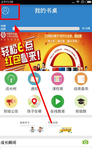 1、下载江西校讯通进入之后,点击如下图所示的按钮。