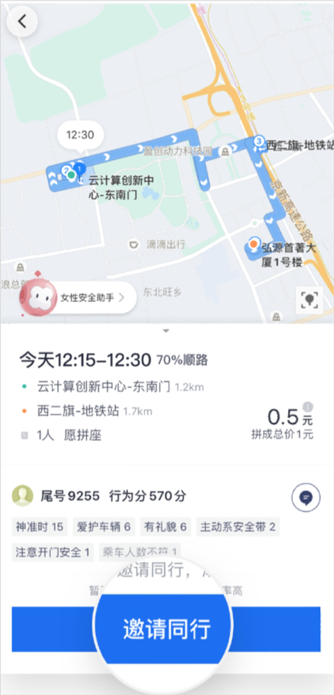 选择合适的顺路乘客发出拼座邀请,等待乘客接受后即可
