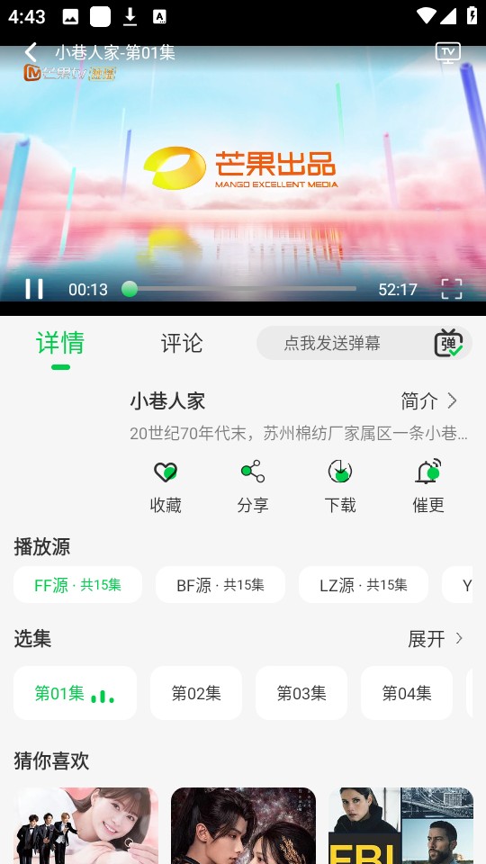 2、任意选择一部你喜欢的剧集,这里以“小巷人家”为例,点击即可播放。