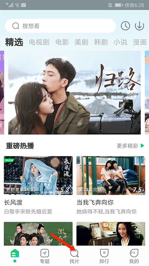 1、打开蜂鸟追剧app,进入app,选择【找片】
